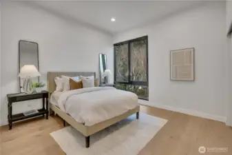 Stunning 2026 new construction designed for modern Seattle living. This light-filled 4-bedroom, 3-bath home showcases soaring 10-ft ceilings, expansive folding doors, and exceptional indoor-outdoor flow to a covered entertaining patio with BBQ area. The open-concept main level features a chef’s kitchen with stainless appliances, statement hood vent, walk-in pantry, and seamless dining and living spaces. A private office and full bath provide flexibility for guests or remote work. Upstairs offers four bedrooms including a luxurious primary retreat with covered balcony, oversized walk-in closet, and spa-inspired five-piece bath. A spacious laundry room with built-in cabinetry adds convenience. Efficient mini-split heat pump comfort, thoughtful layout, and timeless design throughout.