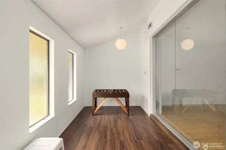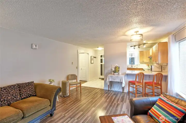 Adorable, affordable and move in ready! Nicely updated kitchen with brand new stove and dishwasher, SS appliances, eat-in bar and beautiful solid wood cabinetry. Living room area with a cozy wood burning fireplace and room for a dinette. Newer tile laminated flooring throughout, no carpet! Updated and tiled main bath. Enjoy your mornings with coffee on the patio surrounded by green space. Property features a gated community pool, club house, sauna and racquetball courts. Dedicated parking, in unit W/D and well managed HOA. Very close to Light rail, Trader Joe's, Edmonds College and shopping. Pet friendly!