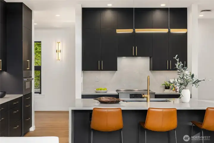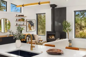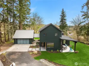 Enjoy quintessential island living in this stunning Modern Farmhouse in the heart of historic Eagledale! Set on a sunny one acre knoll overlooking 100+ year old homes, this architectural gem delivers both privacy and style. This better than new, custom 3BR/3BA home was built in 2023 with impeccable materials and craftsmanship. The open floor plan boasts vaulted ceilings and generous windows that brighten the interiors year-round. A fabulous gourmet kitchen is at the heart of the great room, offering ample storage, gorgeous cabinetry and a quartz topped waterfall island with eating bar. Just outside the dining area is a spacious covered patio perfect for year-round enjoyment. With a main floor primary suite and an office on each floor, this flexible floorplan lives larger than the square footage. An oversized detached 2 car garage connects to the house via a covered breezeway. Thoughtful infrastructure has an eye to the future including being solar panel ready and having a 5BR septic system to allow for a potential ADU. Best of all...there are numerous trails right out your door to Eagledale Park, Port Blakely & Blakely Harbor!