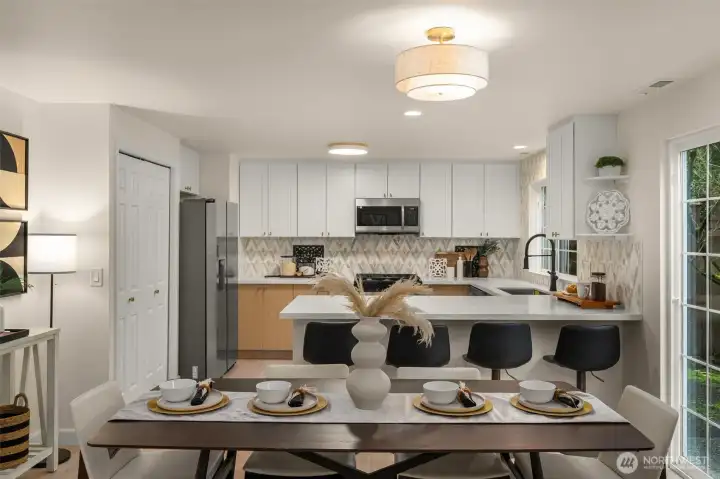Nestled in a small community, this beautifully remodeled home offers a wonderful balance of space, comfort, and convenience. No detail was overlooked in the renovation, with thoughtful updates throughout that give the home a fresh, modern, and truly move-in ready feel. The kitchen features granite countertops, soft-close cabinetry, and designer tile accents that add both style and function. Upstairs, the spacious primary suite offers a peaceful retreat with a true five-piece bath, generous walk-in closet, and a private tree-lined outlook. Bonus space upstairs is perfect for a desk, workspace, or home office, while a centrally located full-size laundry room adds everyday convenience next to the bedrooms. Step outside to a fully fenced backyard with patio space, surrounded by mature trees that create a quiet, private setting for relaxing, entertaining, or letting pets out with ease. A two-car garage plus driveway parking provides added convenience rarely found in condo living. Located minutes from Kent Station, shopping, restaurants, parks, and with quick access to Hwy 167 and I-5, this home offers an ideal blend of comfort, style, and accessibility. New roof currently being installed! Welcome home.
