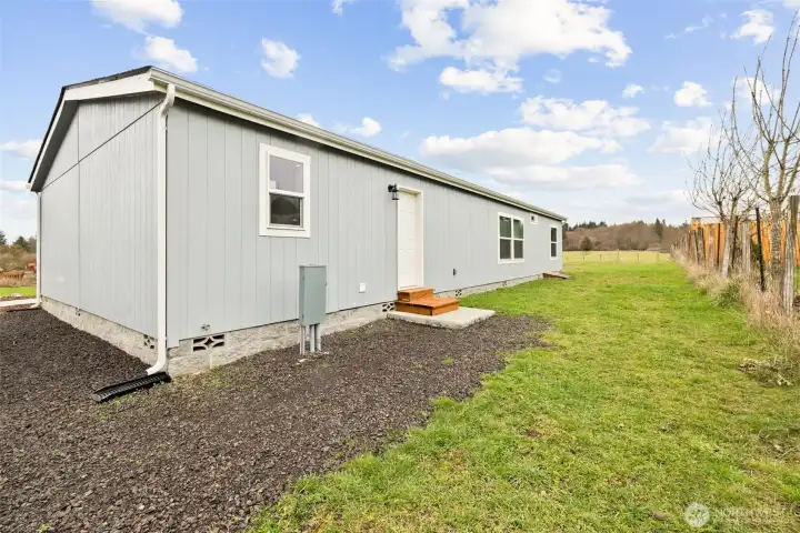 Brand new 4-bedroom, 2-bath manufactured home situated on nearly ½ acre in a convenient location close to town. This thoughtfully designed home features new stainless steel appliances, a spacious utility room with shelving and sink, master bedroom with walk in closet and is pit-set on a full concrete slab with cinder block skirting. Electrical is already stubbed at the meter for a future shop or garage, offering excellent potential for expansion. Enjoy the outdoor patio and a generous yard with ample space for a shop, garage, garden, or additional outdoor living. Ideally located near shopping, restaurants, and just minutes from downtown Port Angeles.