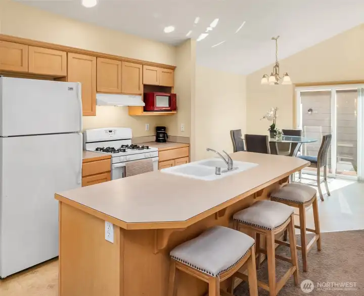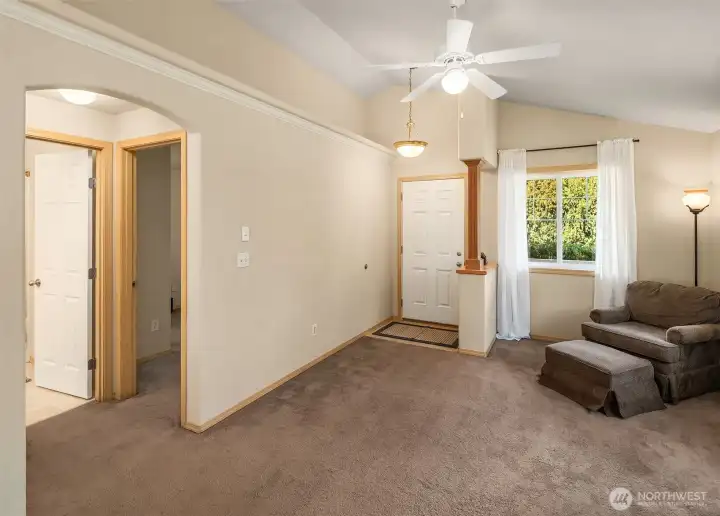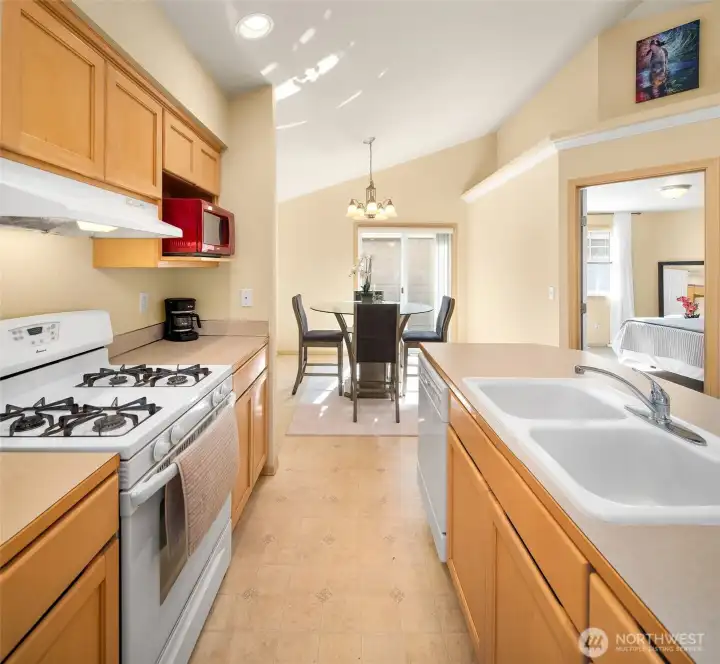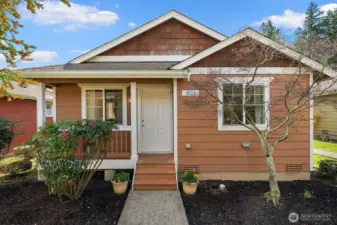 Welcome to this light and cheerful 2-bedroom rambler, beautifully maintained and truly move-in ready! Enjoy easy, low-maintenance living with the association handling landscaping—giving you more time to relax and enjoy your home. The bright kitchen features warm maple cabinetry, a center island with eating bar, and all kitchen appliances included for a seamless move-in. Vaulted ceilings create an airy, spacious feel, complemented by a built-in display ledge for art or collectibles. Stay comfortable year-round with efficient, affordable gas forced-air heat and hot water. The primary bedroom offers private access to a full, bright bath. Step outside to a covered back porch—perfect for morning coffee or evening unwinding. A detached oversized one-car garage (#12C) for added convenience and storage, provides covered parking and off street parking in the driveway. Located in the welcoming community of Sedro-Woolley, with Cascade Mountain views and small-town charm. Just across the street, enjoy 14-acre Olmsted Park, home to Thompson Pond and its annual steelhead derby. Nearby access to the Cascade Trail offers 22.5 miles for walking, biking, or running. Single-family residence (not a condo)! An easy and lovely place to call home...