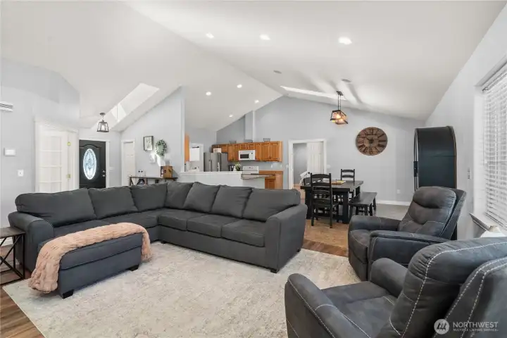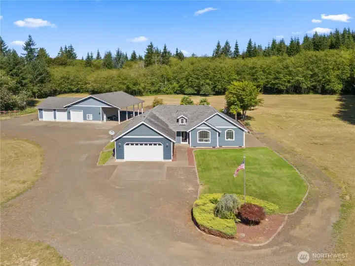 Welcome to your private Elma oasis! Situated on 5.4 flat, cleared acres, this beautifully maintained rambler offers the perfect balance of peaceful country living and modern comfort. The spacious interior showcases a blend of tile, laminate, and carpet flooring, and a thoughtfully designed kitchen and living area that flows seamlessly for everyday living and entertaining. A newer heat pump provides efficient year-round comfort. Step outside and enjoy the incredible outdoor living spaces, including a covered deck and large custom patio with firepit, perfect for gatherings or relaxing while taking in the peaceful rural setting. The property also features a massive 60×36 fully finished shop with a theater room loft/potential ADU space, 12-ft doors, a half bath, and lean-to storage, making it a dream setup for hobbies, equipment, RV storage (with hook ups), or a home business. With RV parking, garden space, pasture potential, and plenty of room for toys or animals, this property offers exceptional versatility while still being just minutes from town. Rarely does a property with this level of privacy, acreage, and shop space come available—don’t miss your chance to own this remarkable Elma retreat.