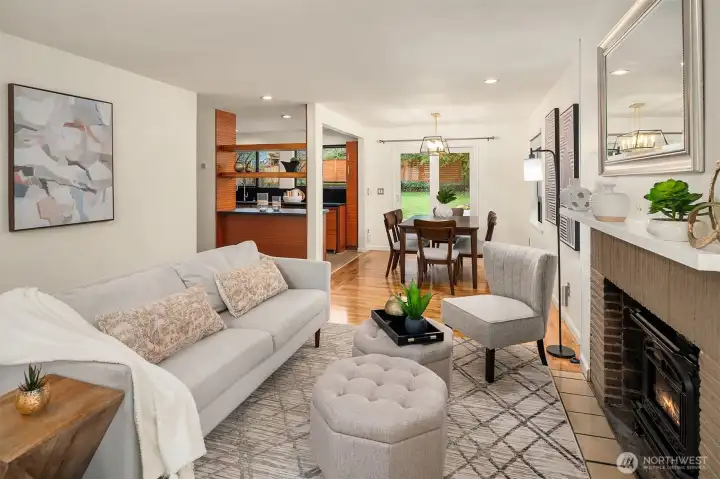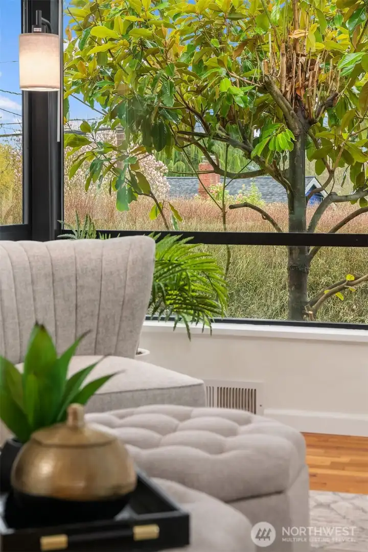 This Mid Century Masterpiece Offers A Sophisticated Blend Of Heritage Aesthetic And Modern Functionality Across Almost A Rare Quarter Acre Lot. Defined By Clean Lines And An Authentic Minimalist Spirit The Upper Level Features Gleaming Oak Hardwood Floors That Flow Into A Formal Dining Room. Large Sliders Open To An Expansive Deck Bathed In Radiant Eastern Light, Perfect For Morning Rituals Or Grand Entertaining. The Remodeled Kitchen Is A Study In Modern Design, Boasting Tactile Paperstone Counters Open Cabinetry And A Suite Of Premium Stainless Steel Appliances Anchored By A Gas Stove. Warmth Radiates Throughout The Living Spaces From Classic Wood Burning Fireplaces. The Main Bath Has Been Thoughtfully Remodeled To Maintain The Integrity Of The Home While Adding Contemporary Comfort. An Attached One Car Garage Provides Secure Convenience And Seamless Access To The Main Level. Designed For Versatile Multi Generational Living The Lower Level Functions As A Private Sanctuary With Its Own Dedicated Entryway. This Level Includes An Additional Kitchen, Full Bath, Plus A Spacious Bedroom And A Bonus Room Warmed By A Second Fireplace. Outside The Massive Grounds Provide Boundless Privacy Just Minutes From The Vibrant Energy Of The Meadowbrook Community Center, The Iconic Burke Gilman Trail, And The Natural Beauty Of Matthews Beach. With Easy Access To Light Rail This Residence Offers A Harmonious Connection To The City While Maintaining A Serene Residential Retreat.
