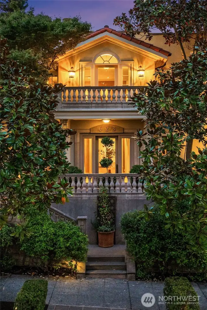 A rare offering, this gorgeous modern villa presents a special combination of a coveted location, an opulent residence, and iconic Seattle views. Located on the tree-lined boulevard of West Highland Drive, this property showcases Old World Italian style along with the ease of living in a home built for the modern era. Extensively remodeled in 2003, this property has been thoughtfully maintained and improved to perfection. Step through the ornate, wrought-iron gated entry into enchanting courtyards, balustrade-lined terraces, and captivating mature landscaping. Italian-renaissance inspired interiors feature grand entertaining spaces, soaring ceilings, Venetian plaster walls, Fortuny fixtures, and marble flooring. Enjoy a spectacular sweeping view of the Seattle skyline, Mount Rainier, and Elliott Bay from the rooftop deck. Modern amenities include an elevator, central air conditioning, radiant-heated stone floors, sauna, solar panels, EV charging & more. Perfectly sited on Queen Anne hill's southwest slope, this property is awash in a magical quality of light. This favorite Seattle borough is treasured for its history, charm, hilltop views, lively parks & playgrounds, and delightful shops & dining along Queen Anne Ave. Enjoy convenient accessibility to Seattle Center events, the vibrant tech hub of South Lake Union, and downtown Seattle employers, amenities, and attractions, including the Olympic Sculpture Park, Pike Place Market, and waterfront shops & dining. Welcome home!