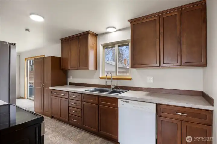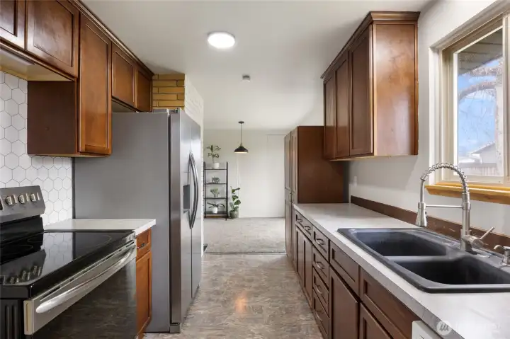 Recently renovated 3-bedroom, 1.5-bathroom home conveniently located near Moses Lake: Elementary, Middle School, and High School. Situated on a large corner lot with mature trees and established landscaping, this property offers plenty of outdoor space including a spacious side yard ideal for additional parking, RV storage, or extended lawn area. The fully fenced backyard provides privacy and security while raised garden beds create a perfect space for gardening. Inside, the home features new carpet and fresh interior paint throughout. The living room offers a cozy wood burning fireplace, creating a warm and inviting gathering space. The remodeled kitchen includes stainless steel appliances, updated countertops, and a stylish backsplash. The primary bedroom includes a convenient half bath, and the home offers generous storage throughout. Additional features include a one car garage and a functional layout that makes everyday living comfortable and efficient.
