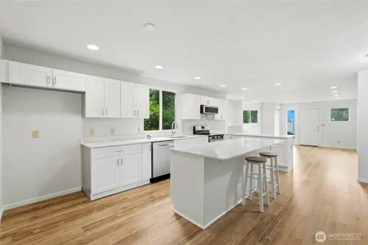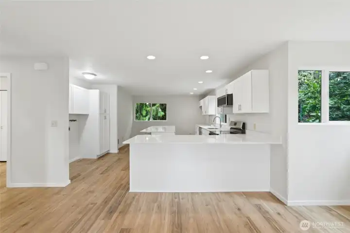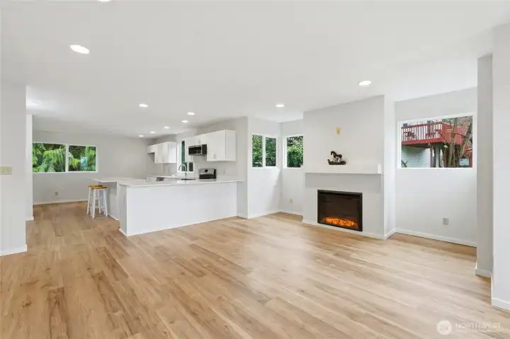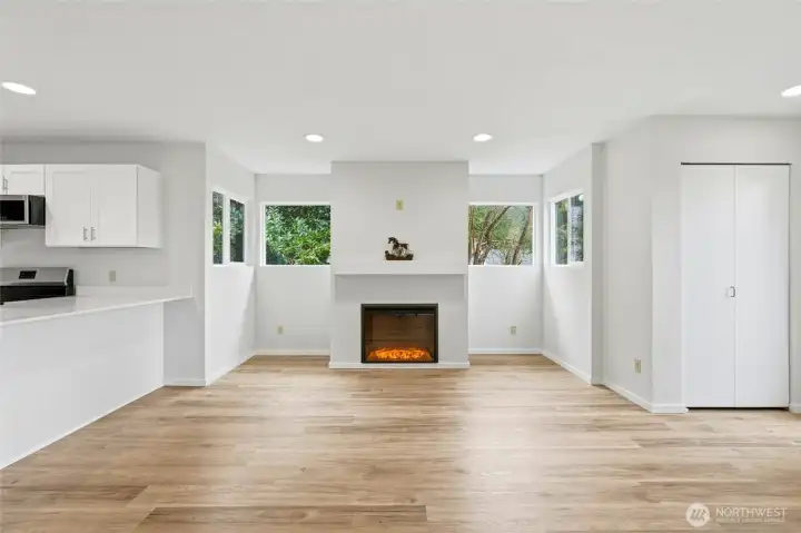 Welcome to this beautifully updated North Everett condo that delivers comfort, style, and exceptional value. With over 1,098 sq ft of thoughtfully refreshed living space, this upper floor end unit offers privacy, natural light, and a layout that truly feels like home. Inside, you will find brand new plank flooring throughout and a stunning remodeled kitchen featuring new cabinetry, sleek quartz countertops, and a stylish island perfect for everyday living or entertaining with the open floor plan. Both bathrooms have been tastefully updated, while new recessed lighting and a brand new electric fireplace create a warm and inviting atmosphere. Major improvements including updated wall heaters, double pane windows, and a brand new hot water heater providing year round comfort and peace of mind. In unit laundry hookups add convenience, and the detached garage offers additional storage and parking. HOA dues include water, sewer, garbage, and insurance, helping make ownership both simple and affordable. Located just minutes from Downtown Everett, the waterfront, shopping, dining, parks, and quick freeway access, this move in ready condo offers an incredible opportunity to enjoy modern updates and a convenient location at an approachable price point.