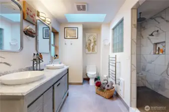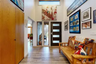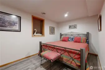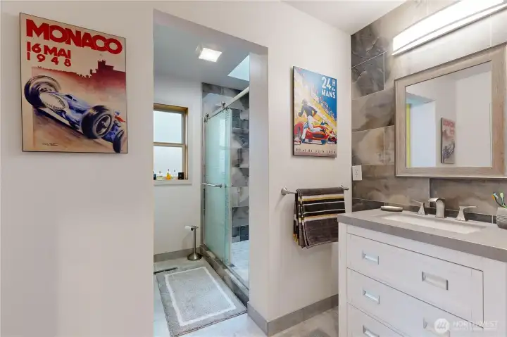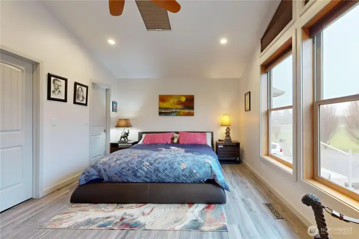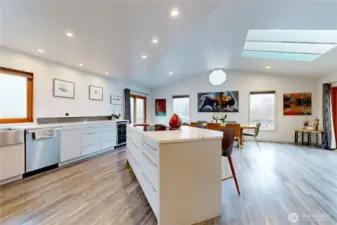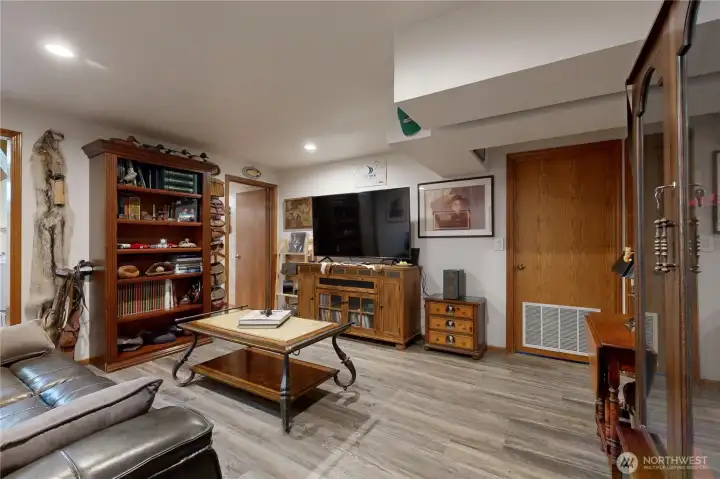 Set along the 14th fairway in a quiet cul-de-sac with minimal traffic, this remodeled home offers an open layout filled with natural light, vaulted ceilings, skylights, and a wall of windows framing golf course views. The main level opens into a spacious, connected living and dining area centered around an island kitchen, all oriented toward the views and outdoor access. The primary suite includes dual closets and a full bath with double sinks, soaking tub, and separate shower. Two additional bedrooms and a full bath complete the main floor. The daylight basement is well suited for extended living, multi-generational use, or guests, accessed by a walnut staircase that adds warmth and character. Highly versatile, it offers a large rec room with private exterior access, an additional room for office or media, a bedroom with egress window, a full bath with shower and sauna, a spacious laundry with folding aera, a bonus room ideal for wine or food storage, and a generous utility room with storage space. Outdoor living is designed with two decks: a west-facing deck to take in stunning sunsets and an east-facing deck to enjoy morning coffee overlooking the golf course. The landscaped, oversized backyard includes a retaining wall, patio, garden beds, and is fully fenced with two access gates. A 3-door garage with work area, plus a separate golf cart garage for additional storage. No HOA, offering more freedom and flexibility. Minutes to amenities, shopping, dining, and downtown.