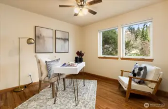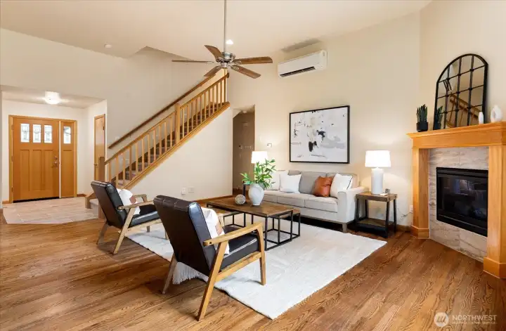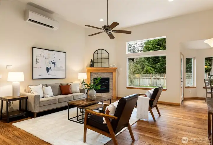 Welcome to Whispering Firs in Freeland. This beautifully maintained Craftsman offers the ease of main-level living, making it ideal for first-time buyers, downsizers, or those seeking the perfect work-from-home retreat. Hardwood floors run throughout the main living spaces, where an open kitchen flows seamlessly into a cozy living room anchored by a propane fireplace—perfect for cooler island evenings. The primary suite features a spacious walk-in closet and an en-suite bath with a large shower, while two additional bedrooms are also conveniently located on the main level. Upstairs, a generous bonus room provides flexible space for an office, playroom, or media room. Outside, enjoy a large backyard with thoughtfully designed landscaping. Recent upgrades since 2022 include new carpet in the bonus room, a Generac generator, heat pump, and updated plumbing and lighting fixtures. Making this home move-in ready and a wonderful place to call Whidbey home.