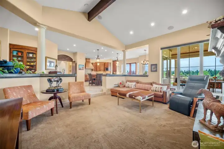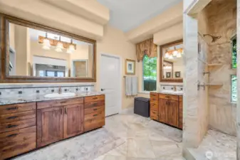 Exceptional gated Mediterranean-inspired estate offering 6,000+ combined multi-generational living on a picturesque 5-acre parcel with Mt. St. Helens views. Main home (4000 sf) features 3 bedrooms + office/flex room, Chef's kitchen with sub zero,Wolf, Bosch & Dacor appliances. Spectacular open and bright vaulted Great-room, Custom woodwork throughout. Luxurious primary suite, fireplace, heated floors in spa like bath, large walk-in closet.Attached (1,100 sf) ADA compliant ADU with full kitchen, bath, bedroom, fireplace.Plus a detached (900 sf) studio apartment. Oversized wraparound covered outdoor living space. Impressive shop building with 60 foot RV bay Full RV hookups, Built-ins and storage. Quality built state of the art barn and arena, Fenced and cross fenced,Enjoy a serene Park-like setting with mature trees, lush landscaping, expansive green lawns, fire-pit, putting green.Resort living yet close to both freeways, Airport, Hospital, Shopping, Restaurants. Rare opportunity for luxury lifestyle and multi-generational living.