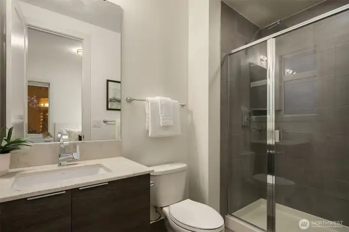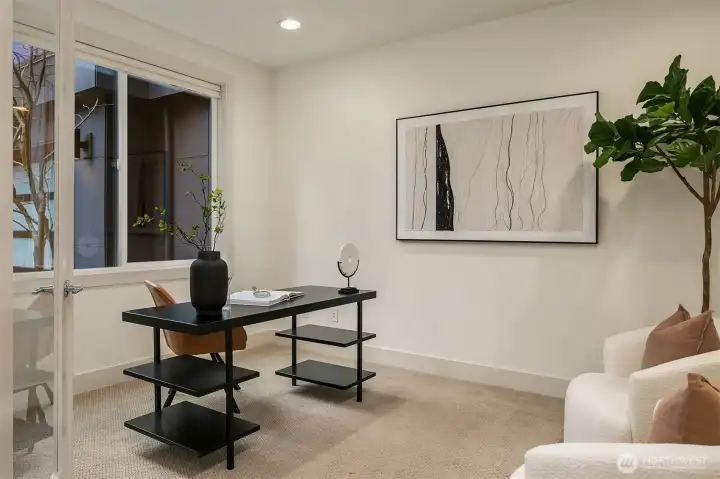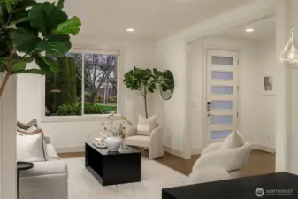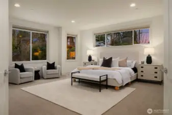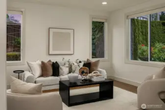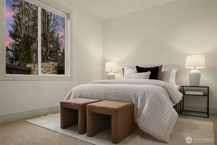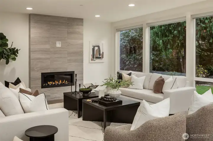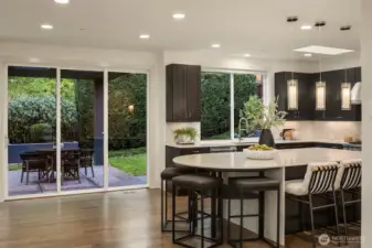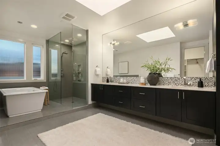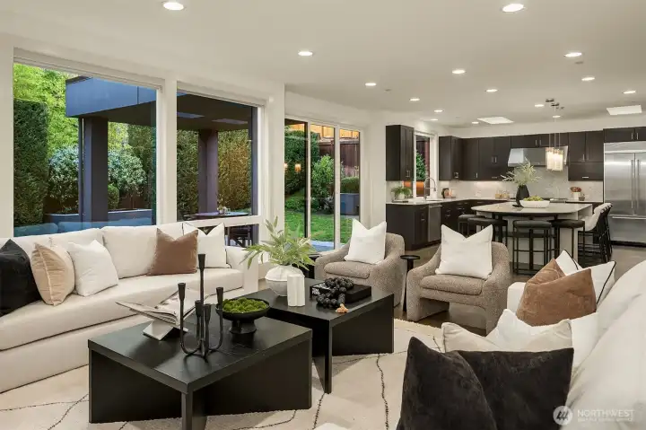 Exceptional privacy meets modern sophistication in this meticulously maintained East of Market home. A perfect layout with main floor office, formal spaces, & guest-room that opens to a private patio for effortless living or hosting. Freshly painted interiors & skylights create light-filled spaces. Quarter-sawn oak floors flow to a modern kitchen with waterfall quartz island with custom extension, Belmont cabinets, 48-in dual-fuel range, and butler's pantry with wine fridge. Entertain in the great room opening to a backyard oasis featuring a covered patio, privacy hedges, and professional landscaping; the ideal spot to gather. Upstairs find 4 large bedrooms including a primary suite, jr suite, giant bonus room and den. 3-car garage with EV charger, ring security, and steps to Peter Kirk elementary & Kirkland Middle.