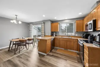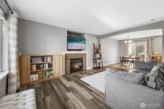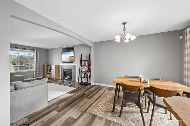 Beautifully maintained home in the desirable Stonerise community! Step inside to a bright and inviting formal living room featuring a cozy gas-burning fireplace—perfect for relaxing evenings. The main level showcases durable LVP flooring throughout, offering both style and easy maintenance. The light-filled kitchen provides ample cabinetry and generous prep space, with all appliances included for your convenience. Enjoy casual meals in the breakfast nook, complete with a slider that opens to the backyard—ideal for indoor-outdoor living. Retreat to the HUGE primary suite featuring a beautifully remodeled bath with a tile walk-in shower. Two additional guest bedrooms and a full bath offer plenty of space for everyone. Newer carpet adds comfort in all the right places. Major updates include a newer roof (just 4 years old) and all windows plus the slider door replaced for added efficiency and peace of mind. Outside, you’ll find a HUGE fully fenced backyard with a patio—perfect for entertaining, gardening, or simply unwinding. This home truly has it all!