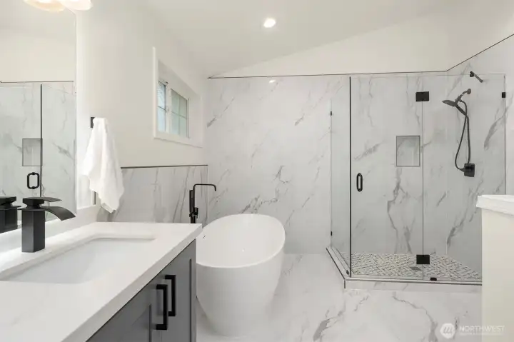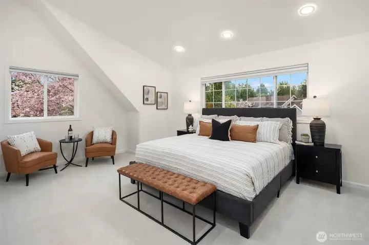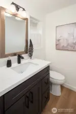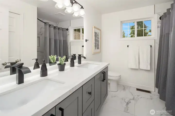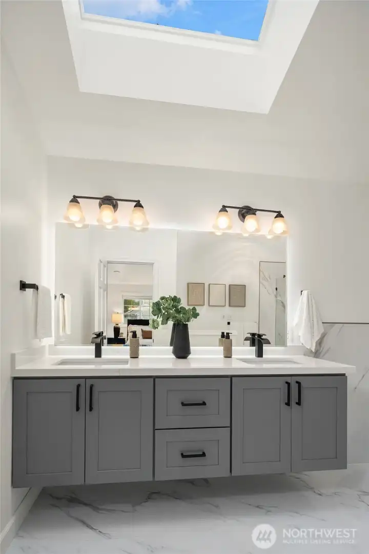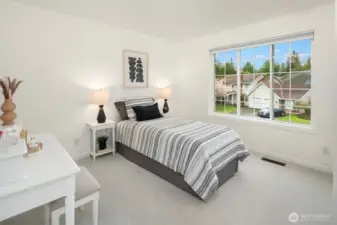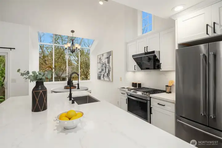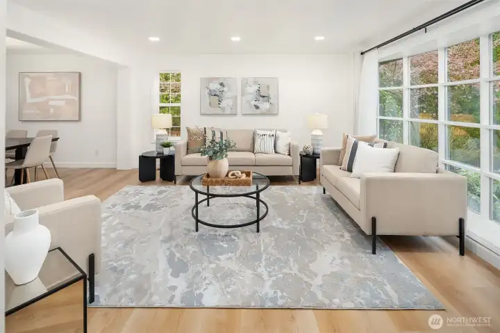 Live just 1 mile from Microsoft in this substantially updated 2,400 square foot masterpiece which includes 4 bedrooms, 2 1/2 bathrooms, and a spacious 2 car garage on a fully fenced 1/4 acre lot. Entertain effortlessly in a chef inspired kitchen featuring new cabinetry with under cabinet lighting, quartz center island, full-height backsplash, stainless steel appliances, and integrated water filtration system. Retreat to the primary suite with a fully renovated bath, frameless glass shower, floating vanity, quartz counters, and serene recessed lighting. Two additional bathrooms shine with contemporary finishes, quartz countertops, and updated vanities. Whole-home upgrades include new LVP flooring, fresh interior paint, updated trim, dramatic tiled fireplace wall, recessed lighting, new furnace & central AC with smart Ecobee thermostat, updated laundry, and new roof. Enjoy the ultimate in convenience with Redmond Town Center and Marymoor Park just 2 miles away, plus easy access to 520. Move in and experience the perfect blend of modern comfort, style, and location!