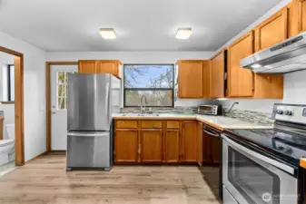 Wonderful home that shows bigger in person! Conveniently located in desirable Tumwater Hill, just minutes from Hwy 101 and I-5. Open floor plan with large kitchen/living space, stainless appliances, LVP flooring, freestanding wood stove, and main floor bedroom. The vaulted ceiling and skylights, along with the open staircase, make the home airy and bright. Ductless heat pump provides cool air for summer comfort. Generous closet in primary bedroom, with ensuite access to full bath. Enjoy the back deck and peek-a-boo view of Mt Rainier! Washer and dryer included—terrific opportunity for first-time-buyers or an investment property. EV Charger in garage, as well. Enjoy the close amenities this appealing location offers. This home may qualify for a 4.75% interest rate! Call for a private tour.
