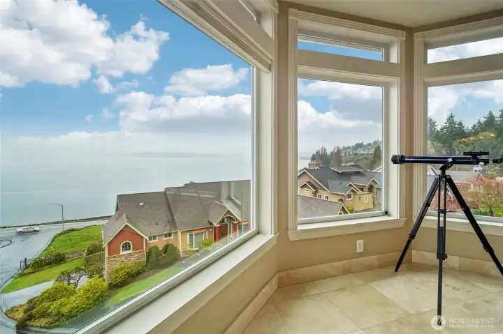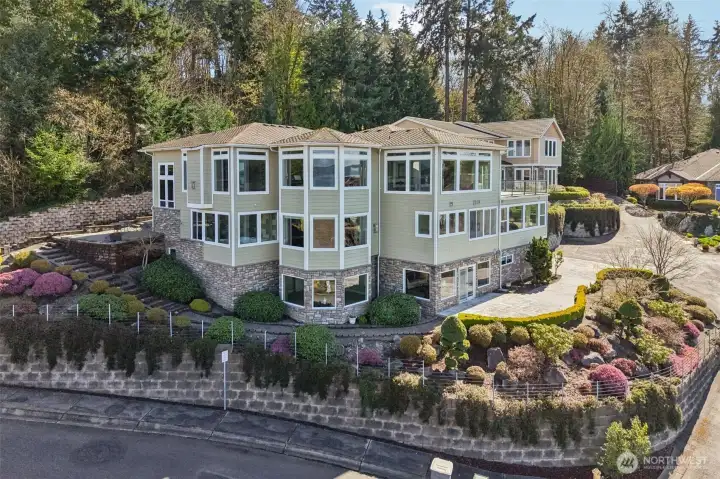 Refined elegance meets the charming quaint city of Steilacoom. Truly a one of kind property nestled into the hillside that provides sweeping views of Puget Sound, Olympic Mt's & Islands from every vantage point. At modest 8,283sq ft, this statement piece of a home features 2 separate units in one. Featuring separate entrances for both, each with its own 2-bay garage. Enter through the grand top-floor entrance into an impressive foyer w/a dual staircase, soaring ceilings, & a dazzling Swarovski chandelier that instantly sets the tone for something special. Off the foyer is an elegant office w/a wood desk & custom built cabinetry. Up the grand staircase, is an open-concept kitchen featuring top-of-the-line appliances, a formal living & dining room, a spacious family room, & a media room complete w/a one-of-a-kind secret door. The middle level features an indoor hot tub retreat w/oversized windows that capture panoramic views. This floor includes a luxurious owner’s suite, complete w/a spa-inspired 5-piece en-suite bath that makes every day feel like you just woke at the Four Seasons. Is there more? Perhaps, modest was an understatement... Yes, there is an entire LL MIL suite (1650sq ft - 2bdrms, 2.5 bth) that features similar amenities to the top floor & wine cellar. Hidden gems around every corner, featuring EV charging & a custom, whisper-quiet Unico heating & cooling system. Welcome to the pinnacle of living in one of the Pacific Northwest’s most charming hidden gem cities.