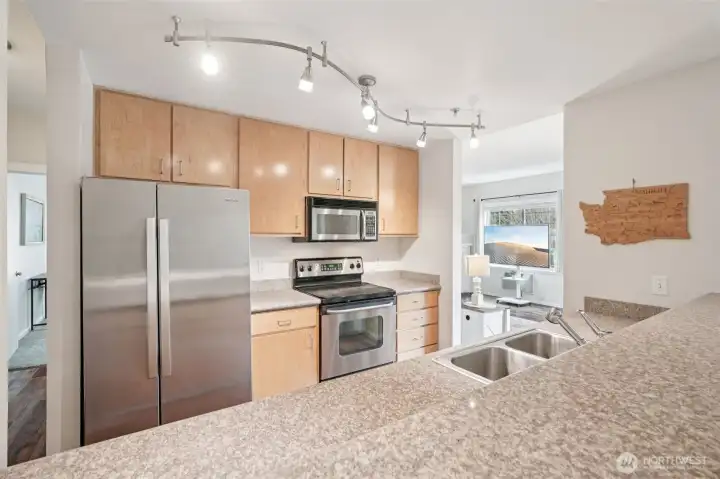 Freshly painted and filled with natural light, this inviting 2-bedroom, 2-bath upper-level condo in the sought-after Ellsworth community offers comfortable, low-maintenance living in a convenient central Vancouver location. Accessed via stairs, the unit features true one-level living once inside, with an open-concept living and dining area highlighted by large windows and a cozy gas fireplace—perfect for everyday living and entertaining. The kitchen offers generous counter space, ample cabinetry, and a breakfast bar that opens to the main living area. The spacious primary suite includes a private bath and ample closet space, while the second bedroom functions well as a guest room, office, or flexible living space. Enjoy the covered balcony for year-round outdoor relaxation, along with the convenience of an attached one-car garage. Ideally located just minutes from I-205 and SR-14 with easy access to shopping, dining, schools, downtown Vancouver, and Portland, this move-in-ready condo combines comfort, convenience, and a low-maintenance lifestyle. Schedule your tour today!
