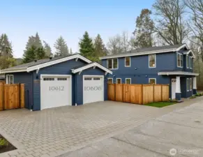 Locate property using GPS: 5420 106th Ave NE Kirkland, WA. Gerry Homes proudly presents a thoughtfully designed new construction single family home blending timeless craftsmanship with modern livability in the heart of Kirkland. This beautifully appointed home offers an ideal floor plan with elegant finishes and intentional spaces throughout. The main level features an open concept living, dining, and kitchen area designed for both everyday comfort and entertaining. The kitchen is anchored by a large island, ample cabinetry, walk-in pantry, and a premium appliance package featuring Bertazzoni Italia, Bosch, and Samsung, flowing effortlessly into the living area with a cozy fireplace. Step outside to the private patio; perfect for relaxing or hosting guests. A charming covered front porch, powder room, and direct access to the attached garage add both style and convenience. Upstairs, the serene primary suite is a true retreat featuring a spa-inspired bath (wired for tub lights) with dual vanities, soaking tub, walk-in shower, and a generous walk-in closet. Two additional bedrooms, a full bath, and an upstairs laundry room provide flexibility for today’s lifestyle. The home offers exceptional parking with two garage spaces, one attached and one detached, plus driveway and off-street parking. Ideally located near Carillon Point, parks, waterfront/marina access, dining, and top-rated Lake Washington Offering a 1% temporary rate buydown through the preferred lender, Loan Depot.