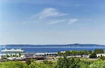 Experience Refined Resort Living at Point Edwards! Enjoy a lock-and-leave lifestyle with captivating views of Puget Sound, city lights, and Mount Baker. Gleaming floors welcome you into this private, front-row-end unit, flooded with natural light through walls of windows that frame serene surroundings. The inviting living room, featuring a cozy gas fireplace and picturesque water and city views, flows seamlessly into a dining area perfect for entertaining. The gourmet kitchen offers stainless steel appliances, granite counters, rich wood flooring, and a bistro bar for casual dining. Thoughtfully designed, the floor plan provides two spacious bedrooms with separate wings for privacy, and central A/C for year-round comfort. The primary suite boasts water views, a spa-inspired bath, and a walk-in closet, while the guest suite includes its own full bath and walk-in closet. A dedicated office with natural light makes it an ideal work-from-home space. Step outside to a generous, sun-drenched deck with southern exposure—a natural extension of the living space, perfect for relaxing, gardening, or hosting gatherings. Additional highlights include two secured parking spaces in a gated garage and two storage rooms. Residents enjoy exceptional resort-style amenities, including pools, hot tubs, fitness centers, guest suites, and more. Discover the elegance and ease of life at Point Edwards—your dream home awaits.