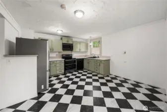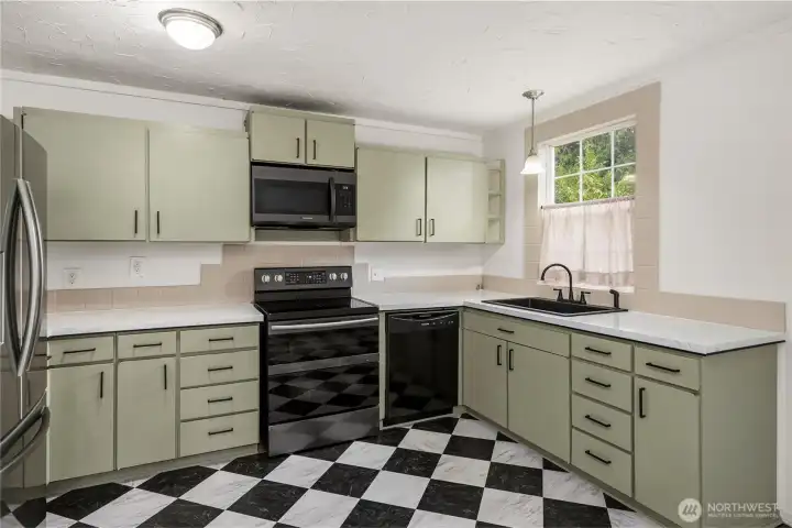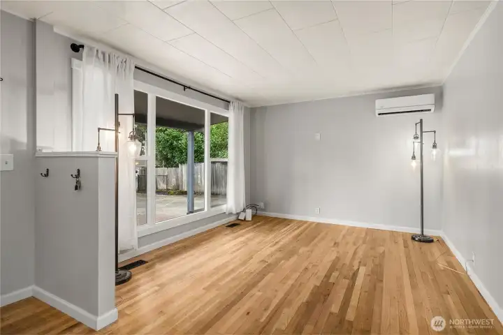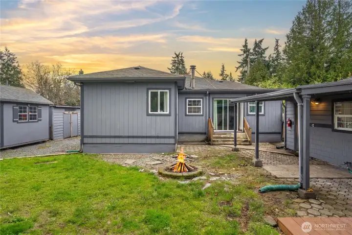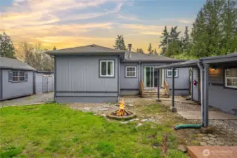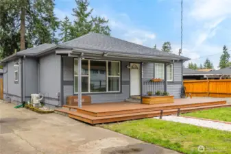 Welcome home to this charming mid-century rambler offering easy one-level living and thoughtful updates throughout. This 3-bedroom home features beautifully restored original hardwood floors and fresh interior paint, blending classic character with a clean, move-in-ready feel. The spacious kitchen flows easily into the living areas, creating a comfortable layout for everyday living and entertaining. The primary bedroom includes French doors and a ceiling fan for added charm and comfort. Stay comfortable year-round with forced air heat and efficient ductless mini split A/C. Step outside to a fully fenced front and backyard with a large covered patio and fire pit—perfect for year-round gatherings. A covered front porch adds to the home’s welcoming curb appeal, while the gated driveway provides privacy and security. The detached extended garage offers great shop space, plus additional outbuildings for storage or a garden shed. RV parking adds extra convenience, and the location offers easy access for commuting to nearby amenities, highways, and JBLM.