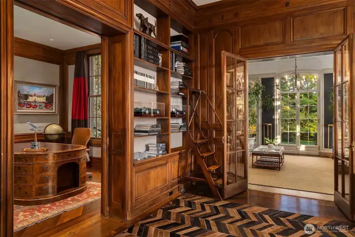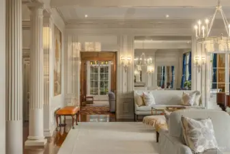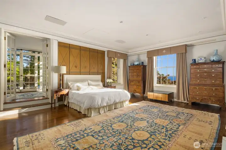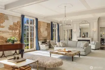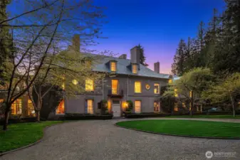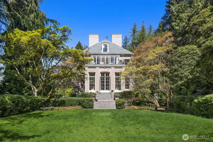 A Georgian Estate by Charles Platt - one of America’s most revered architects - set on 7.26 bluffside acres in the gated Highlands. Regarded as one of the Pacific Coast’s finest examples of Georgian architecture. Inspired by the great country homes of Italy and France, Platt believed that beauty lay in symmetry, clarity, and balance. This estate brings those ideals to life through perfectly proportioned rooms and an effortless flow between architecture and landscape. The home unfolds with quiet drama. A grand, mural-adorned drawing room, paneled library, and formal dining room all frame panoramic views of Puget Sound and the Olympic Mountains. Every detail from soaring ceilings and acanthus-leaf cornices to herringbone hardwoods and a sweeping staircase reflects a profound understanding of classical design and timeless refinement. Olmsted’s vision of naturalistic beauty is reflected in the grounds Open lawns stretch toward the bluff, while woodland paths weave through groves of mature trees and sculpted gardens. A tranquil pond anchors the landscape, and surrounding greenery creates a seamless connection between the residence and the land. It is a setting designed for both retreat and discovery. An extraordinary convergence of architecture, landscape and legacy - without precedent in the architectural history of the Pacific Northwest.