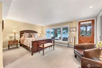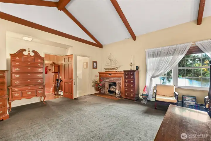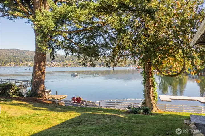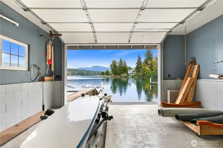 Experience lakeside living at an exceptional scale with this landmark lodge-style estate set on an extraordinary quadruple lot with approximately 180 feet of premier Lake Whatcom waterfront. This timeless retreat blends classic craftsmanship with unrivaled privacy, offering expansive indoor and outdoor living spaces designed to frame sweeping lake and mountain vistas. The main-floor primary suite features a fireplace, walk-in closet, and serene water views. Multiple gathering spaces—including a grand living room, formal dining room with view deck, and a spacious lower-level family room opening to a lakeside patio—create effortless flow for both relaxation and entertaining. A rare twin boathouse anchors the shoreline, complete with two watercraft trolleys, a 3/4 bath, and substantial storage. The property also includes a large dock and swimming area, providing easy access to the lake’s most desirable recreation. An oversized three-car garage and generous parking ensure ample space for vehicles and gear. Tucked along a quiet street in the sought-after Geneva area and just minutes from town, this is an exceptional opportunity to own one of Lake Whatcom’s signature waterfront properties.