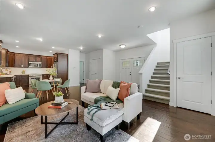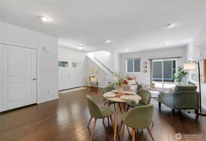 Built in 2017 and meticulously maintained, this 2 bed/2 bath home offers an elevated yet low-maintenance lifestyle in an established Port Townsend neighborhood. Engineered hardwood floors and tall ceilings create a welcoming, open feel, complemented by a chef’s kitchen featuring a Bertazzoni induction range. The dining and living areas flow seamlessly perfect for everyday living and entertaining with a sliding glass door leading to a private side yard- ideal for enjoying the quiet, peaceful setting while still being close to all of town’s amenities. Upstairs, a light-filled versatile nook for an office, playroom, or guest area, along with 3/4 tiled bath and a second bedroom. The primary suite features a large soaking tub, dual sinks, and quartz counters. Located in a quiet residential enclave where the surroundings and sense of privacy are cherished. The greenbelt behind the home creates a peaceful, tree-lined backdrop. Nearby trail connections provide easy access to town, while low-maintenance landscaping makes everyday living simple and effortless.