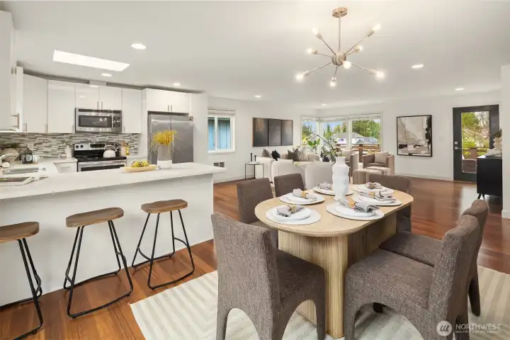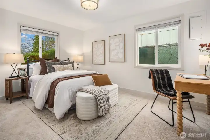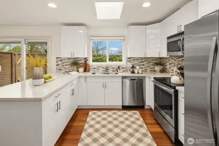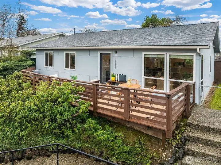 Perched high above the street in West Seattle’s beloved Pigeon Point, this one-level, move-in ready contemporary brings the privacy, the views, and the vibe. Eastern territorial views with some city and mountain outlooks set the stage, while the nearly 40-foot deck spans the front of the home, offering generous outdoor space for sunrise coffee, sunset hangs, and twinkling evening lights. Inside, enjoy an open floor plan with African Iroko wood flooring, designer kitchen cabinetry, white quartz counters, custom backsplash, stainless steel appliances, and seamless flow for daily living or entertaining. With 3 bedrooms and 2 baths, including an ensuite primary, this home lives easy all on one level. Recent updates include a new roof (2026), fresh interior paint, new carpet, double-pane windows, newer main water line, and hardi-plank siding. Fenced yard for pets or gardening, storage shed, and 2 off-street alley parking spaces for no stair entry complete the package. Tucked into one of West Seattle’s hidden-gem neighborhoods, Pigeon Point is loved for its friendly community, low-traffic streets, green space, nearby trails, and quick access to downtown, Alki, the Junction, and the West Seattle Bridge. Near Pathfinder K-8 and in the reference area for Lafayette Elementary, Madison Middle, and West Seattle High.