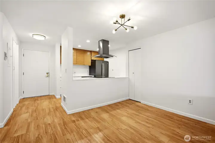Adjacent to Discovery Park and just moments from the Burke-Gilman Trail and the Ballard Locks, this location is truly exceptional—offering effortless access to Magnolia Village, Metropolitan Market, and the Ballard Farmers Market. Unusually spacious for a one-bedroom at 825 sq ft, this beautifully remodeled condo blends generous scale with refined design. The thoughtfully updated kitchen features quartz countertops, soft-close cabinetry, and durable LVP flooring—pairing modern style with everyday functionality. The expansive sunken living room is filled with natural light and anchored by a cozy wood-burning fireplace, with easy access to your private balcony. The oversized bedroom easily accommodates a king bed and offers abundant closet space, while the chic, modern bathroom showcases a large walk-in shower. Additional highlights include a large pantry, secure garage parking, elevator access, private storage, a fitness room, and a game room. Rare in size, tastefully updated, and set in an unbeatable location—this Magnolia condo truly stands out.