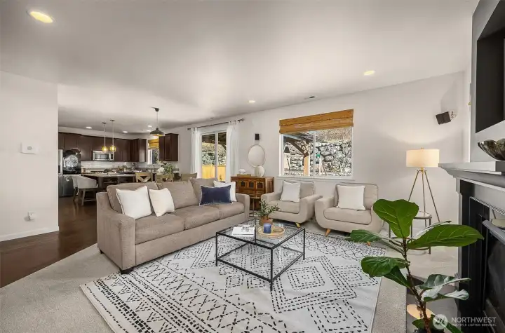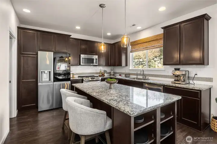 Elegant living meets everyday comfort in this thoughtfully designed home filled with natural light and inviting gathering spaces. Rich hardwood floors flow through the entry, kitchen, and main living areas, while a striking granite-surround fireplace anchors the family room. The kitchen showcases granite slab countertops, stainless steel appliances, crown-molded cabinetry, a full-height subway tile backsplash, and a spacious island ideal for gathering. Fresh interior paint and new carpet create a crisp, move-in-ready feel. The spacious primary suite offers a peaceful retreat with an en-suite bath featuring a soaking tub and generous space to unwind. Additional bedrooms provide comfortable living with ample closet space. A generously sized laundry room includes built-in cabinetry for added storage and functionality. A mudroom with built-in bench and cubbies adds everyday convenience. The fully fenced backyard is designed for relaxing and entertaining with a covered outdoor living area, expanded patio, and tiered retaining wall landscaping that adds character and privacy. Mature landscaping and established trees create a peaceful outdoor setting, supported by a sprinkler system. High-efficiency systems and central A/C provide year-round comfort. Pre-inspected with report available. Minutes to Hwy 9, parks, schools, shopping, and commuter routes.