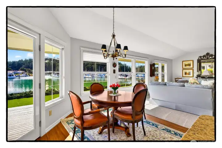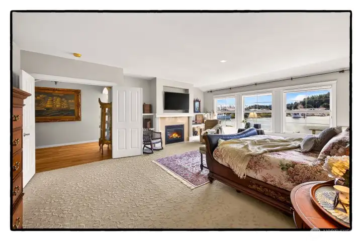 Experience refined waterfront living in this exceptional Shelter Bay residence, showcasing unobstructed panoramic views from nearly every room. With ideal sunny exposure, the home is filled with natural light year-round, while expansive picture windows create a seamless connection to the surrounding coastal beauty. The chef’s kitchen is thoughtfully appointed with a center island, pantry, granite countertops, double ovens, butler’s kitchen, and extensive cabinetry—designed for both effortless entertaining and everyday elegance. The primary suite is a private retreat, accessed through French doors and offering tranquil water views, a cozy fireplace, spacious walk-in closet, and a spa-inspired ensuite with walk-in shower and dual vanities. The main living area features a gas fireplace, custom built-ins, and walls of glass framing ever-changing waterfront vistas. A secondary living room or den with its own fireplace provides an inviting space for relaxation or hosting guests. The expansive 1,150 sq ft attached 3-car garage offers exceptional flexibility for collectors, hobbies, or workshop use, complete with 220V for EV charging. Enjoy resort-style amenities including pickleball, tennis, swimming pool, par-3 golf, private beaches, marina, and boat launch—all just moments from the tulip fields and the charming village of La Conner.