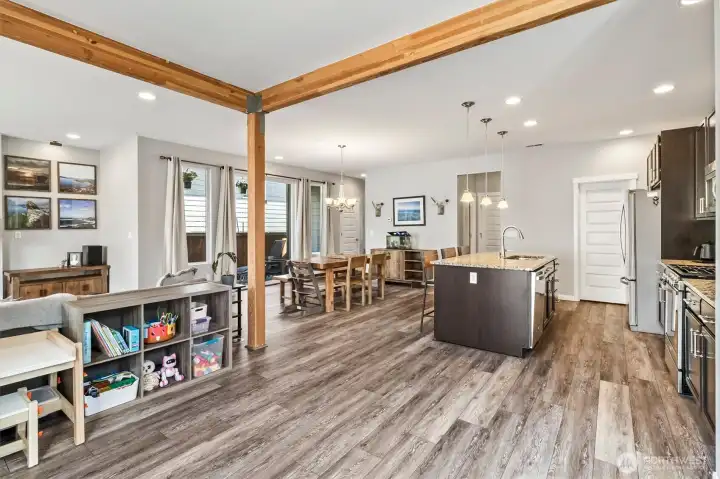 Stunning Skagit Highlands home featuring an exceptional floor plan and a rare lot with direct access to the community park and scenic trail system. Conveniently located with a five minute walk to Harriet Rowley Elementary. This spacious residence offers 4 bedrooms and 3.5 baths, highlighted by a beautifully remodeled and expanded main living area. The former den has been thoughtfully incorporated to create one large, open-concept living room filled with natural light and anchored by a cozy gas fireplace—perfect for gathering and entertaining. The kitchen features granite countertops, a large island with seating, stainless steel appliances, new dishwasher (2025), and a generous walk-in pantry. The expansive primary suite includes a luxurious five-piece bath and walk-in closet, while an upstairs family room provides additional flexible living space.The remodeled laundry room with utility sink and extra storage adds style and functionality, and additional highlights include a convenient mudroom off the garage, two outdoor decks, air conditioning, and more. Garage updated with extra utility sink, custom workbench and tons of shelving throughout. Backyard complete with four raised garden beds and gate to trail and neighborhood playground. A rare opportunity in a highly desirable setting!