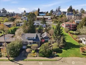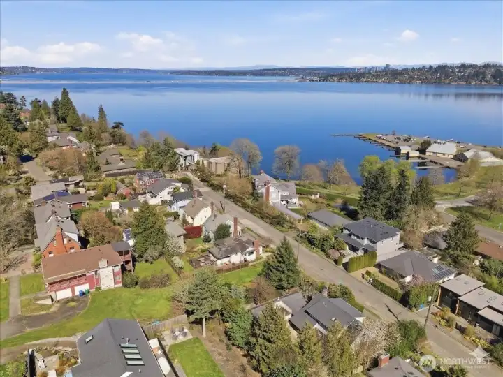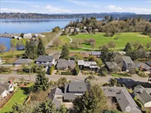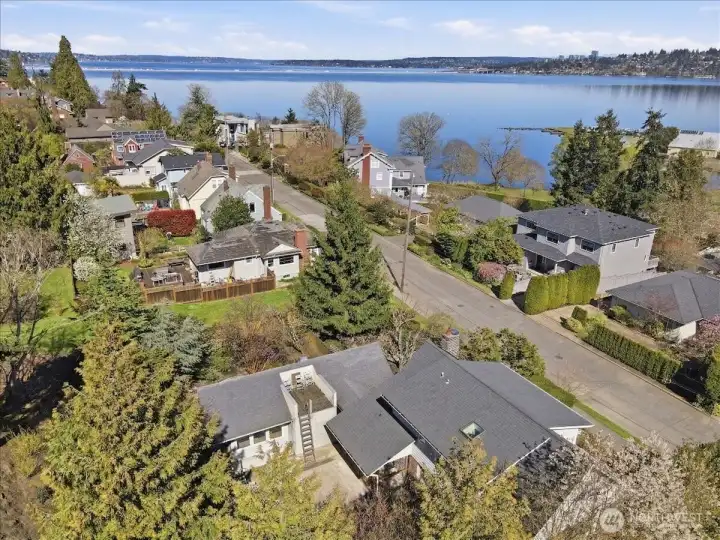 On a quiet street in Mt Baker, 1 block above Stan Sayres Memorial Park on Lake Washington, this midcentury classic awaits. Top floor primary suite with lake and mountain views, two bedrooms on the main floor (one currently setup as an office with glass French doors), and refinished hardwood floors. Downstairs bonus room with built-ins, snack bar and laundry with storage. Multiple possibilities with the "Health Lodge" built in 2004 and featuring radiant heated floors, hot tub (currently not in use), rooftop deck and a half bathroom. Basement with exterior entrance below is great for additional storage or workshop. Beautifully landscaped, large private yard.