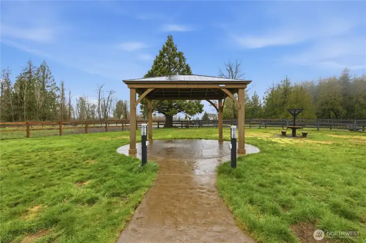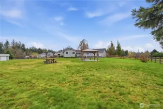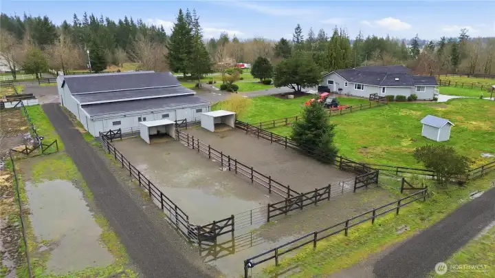 This one truly stands out—an exceptional fully set up horse property built for both personal use & equestrian income potential. Behind the gates you’ll find 8.9 acres thoughtfully designed with 8 separate pastures, each w/water & hot wire, plus 3 paddocks for added flexibility. The arena w/Nike footing, private pond, gazebo make this property as functional as it is beautiful. RV parking & generator wiring for both the home (50 AMP) & barn (30 AMP) add even more convenience. The barn & shop are fully equipped w/everything you need: tack room, 6 stalls including 2 birthing stalls, rubber matting throughout, insulated roof, wash rack w/hot & cold water, fans, pressure washer, washer & dryer, refrigerator, plus new roof & paint. Stall mats & troughs are included, making this a true turnkey setup. Inside, the rambler offers a well designed layout w/an office off the entry, formal living & dining spaces, coffee area & a garden window. The kitchen features a granite backsplash, double ovens & a downdraft cooktop, opening to a large trex deck great for entertaining. A rec room w/an electric built-in fireplace & French doors adds extra space. The primary suite includes dual vanities, 2 closets, a tile shower & heated floors, while a junior suite offers flexibility for multi-gen living. Addit'l highlights~ water filtration system, heat pump, skylights, engineered hardwood, tile floors & a laundry room off the garage w/a .5 bath. Rare opportunity to own a fully dialed in horse property!
