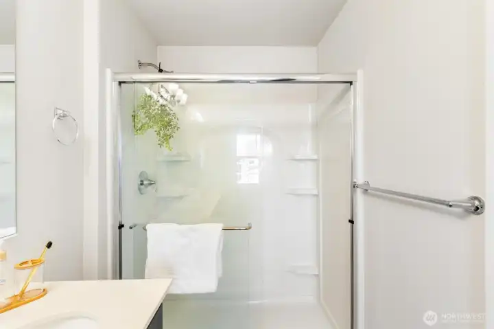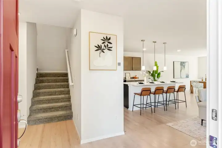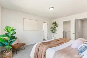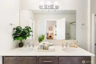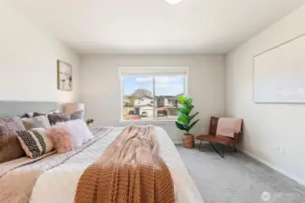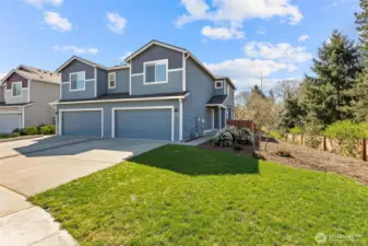 Discover this inviting 3 bed, 2.25 bath home set on a rare, oversized end of cul de sac lot in Cantergrove at Long Lake. With only one adjoining neighbor and no homes behind, the setting offers added breathing room plus a peaceful peek a view of the lake. The main level features an open, modern layout with a spacious quartz island, stainless steel appliances, and a gas range, ideal for everyday cooking or hosting. Step outside to a covered patio and fully fenced yard, perfect for relaxing or entertaining. Upstairs, a versatile loft adds extra flexibility for a home office/gym/media space, while the primary suite includes a double vanity bath and walk in closet. Two additional bedrooms and an upstairs laundry room keep daily routines simple. Enjoy AC, a two car garage, cul de sac, Long Lake Park, community park, and a location close to Costco, shopping, and easy JBLM commuting. A standout lot and a well designed home, this one offers something truly special.
