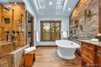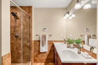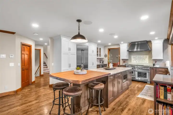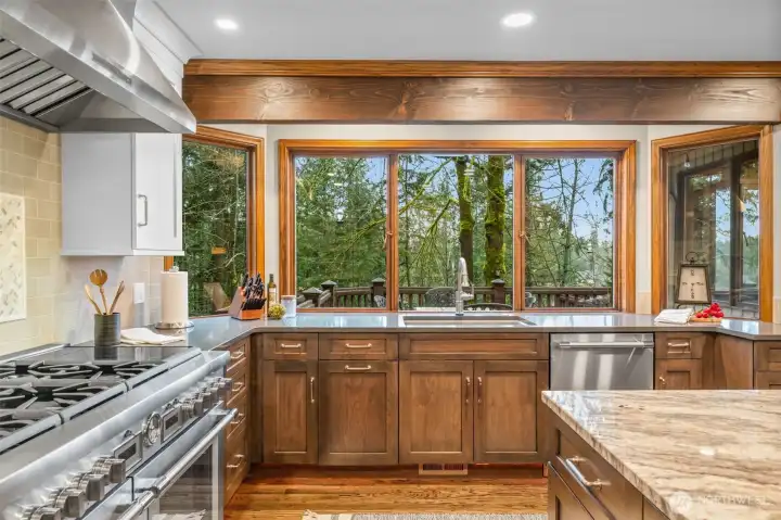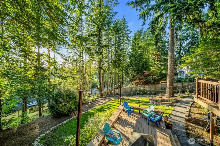 Experience the perfect harmony of sophisticated design and natural serenity in this masterfully reimagined NW Craftsman. Nestled in the heart of Sammamish, this estate isn’t just a home; it’s a private sanctuary designed for a life of effortless connection and quiet luxury. The main level is a masterclass in flow, where a stunningly remodeled kitchen featuring a black walnut eating bar, professional-grade Thermador appliances & expansive island opens into a family room anchored by a warm gas fireplace. Whether hosting formal dinners or casual Sunday brunches, the space transitions effortlessly between elegance and comfort. Upstairs, the primary suite is a true retreat, showcasing vaulted cedar ceilings and a spa-like bathroom with heated floors, a soaking tub, and a rainfall shower that rivals the world's finest resorts. Entertainment is elevated to an art form on the lower level, which features a dedicated theater room, a wet bar, and a high-tech integrated speaker system throughout. Outside, the property transforms into your own private park. With over 2,500 square feet of expansive decking and a secluded hot tub, the backyard is an outdoor oasis built for Pacific Northwest summers. Complete with A/C, whole-home generator and tankless water heaters, this home offers total peace of mind through every season. Enjoy the rare convenience of the award-winning Issaquah School District, easy freeway access and nearby amenities, all while residing in your own private sanctuary.