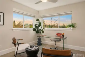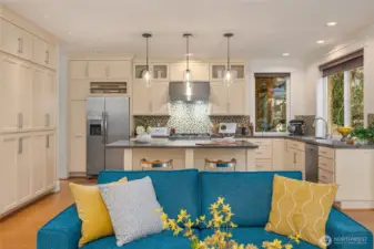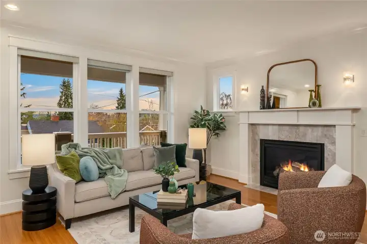 Stunning 2008 Craftsman in the heart of Bryant. This beautifully appointed 3,110 sq ft home welcomes you with a classic rocking-chair front porch and grand entry with tall ceilings. Light-filled living and dining spaces feature custom built-ins, while the gourmet island kitchen offers floor-to-ceiling cabinetry, limestone countertops, 2024 stainless steel refrigerator, and newer dual-fuel range. The open-plan kitchen and living/family area flow seamlessly to a deck and patio, perfect for alfresco dining, and a fully fenced backyard with mature landscaping and privacy. A separate great room and dining area, anchored by a gas fireplace, offer an additional space to relax or entertain. Upstairs, vaulted ceilings create an airy retreat with a luxurious primary suite, walk-in closet, five-piece bath, and territorial and mountain views. Three additional bedrooms, full bath, and laundry complete this level. The lower level includes an additional bedroom, full bath, and flexible family room. Designer lighting and millwork throughout. Two-car attached garage plus two off-street spaces. Blocks to parks, restaurants, schools, and markets, with easy I-5 access. First time on the market.