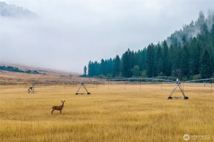 Near the quiet community of Danville in Ferry County, this 576+ acre ranch spans 8 parcels and offers scale, secure water, irrigated ground, and unmatched proximity to public lands. The property includes approximately 69 acres under circle irrigation and 19 acres under hand line irrigation with water rights. Improvements feature a 1996 manufactured home, 80'x60' barn, 50'x30' barn, 65'x30' storage shed, and 30'x40' detached garage (all measurements are approximate). Multiple parcels are adjacent to the Colville National Forest, over 400,000 acres of pristine public land. Set among the stunning backdrop of Northeast Washington’s Kettle River Range with access to abundant wildlife.