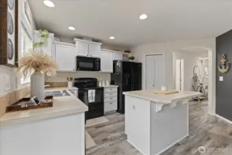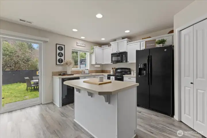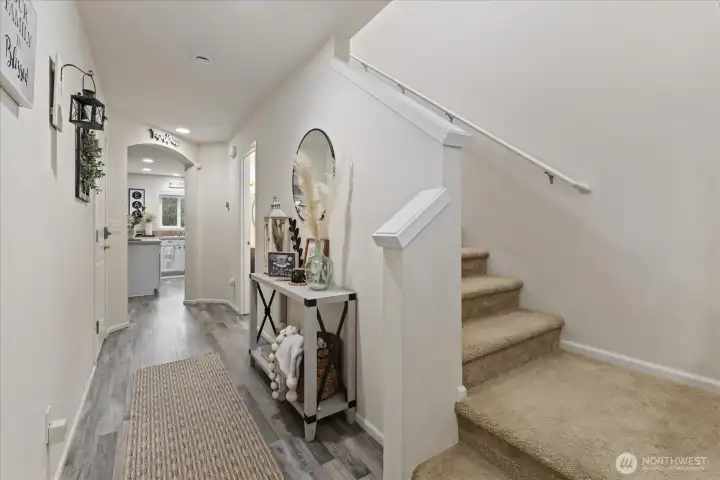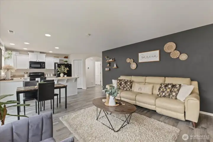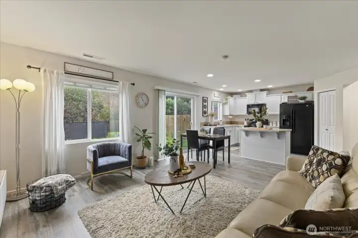Refined comfort meets modern living in this beautifully maintained 2-story home backing to a serene greenbelt with access to 370+ acres of open space, trails & nature. Light-filled interior showcases updated LVP flooring, designer finishes & a seamless open layout perfect for everyday living & entertaining. Inviting kitchen features warm cabinetry, pantry & center island w/eating bar flowing effortlessly into dining & living areas. Spacious living room offers a cozy retreat, while the generous primary suite includes a private ensuite bath & walk-in closet. Secondary bedrooms enjoy peaceful territorial views. Step outside to a fully fenced backyard with patio, garden space & firepit area—ideal for relaxing or hosting. Tankless water heater & 2-car garage w/EV-ready wiring. A rare blend of privacy, style & convenience.