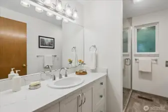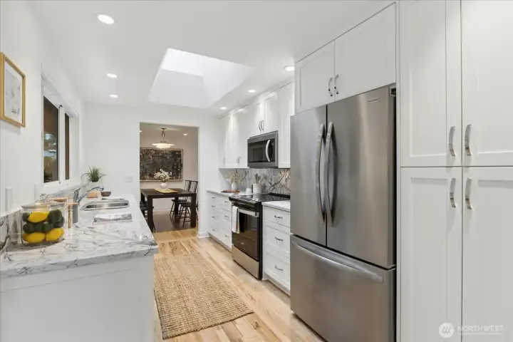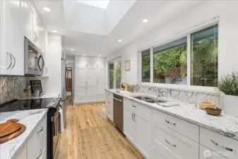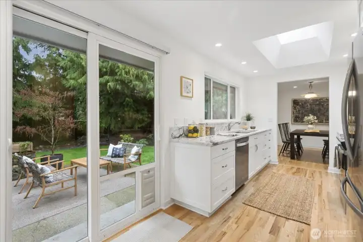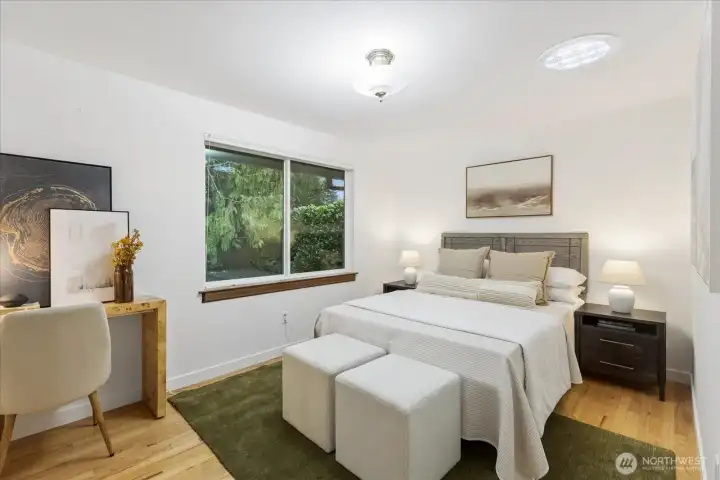 Seaview rambler, beautifully updated and maintained on a secluded, peaceful lot. This home features original oak floors, large dining open to the formal living room with wood fireplace and sandstone hearth. Remodeled kitchen with custom cabinets and quartz counters/backsplash, including lots of storage and pull out cabinets. Cozy family room off kitchen has gas fireplace. Off the hall you will find 3 good sized bedrooms and remodeled 3/4 bath. 4th bedroom/office on opposite end of house, adjacent to another remodeled 3/4 bath and oversized laundry/storage room with outdoor access. Extensive and thoughtful landscaping/new hardscape to enjoy year round. Fully fenced backyard with gorgeous mature native evergreens and many varieties of Japanese Maples in both the front and backyards. Patio off kitchen to rest and relax in the serene yard space. 2 car attached garage, newer roof, new tankless hot water and heat pump/gas furnace. Seaview is a quiet neighborhood, minutes to many parks, downtown Edmonds and freeways! Move in ready rambler!