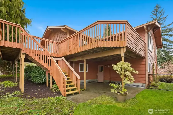 Discover space, light, and sweeping views in this beautifully refreshed Gatewood home. Soaring living room ceilings and picture windows bathe the home in natural light. Fresh paint, new carpet and updated light fixtures make it truly move-in ready. The spacious layout offers 5 bedrooms (3 up, 2 down) plus a rec room, providing flexibility for work, play, and guests. A generously sized dining room features French doors that open directly to the expansive deckâperfect for indoor-outdoor living and entertaining. Step outside to enjoy stunning sunsets and territorial views from the deck overlooking a lush garden on an oversized 8,000+ square foot lot. Garden includes a plethora of fruit, including blueberries, raspberries and strawberries. An attached two-car garage adds convenience and storage. A perfect blend of space, updates and serene outdoor living in the heart of Gatewood.