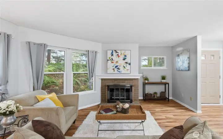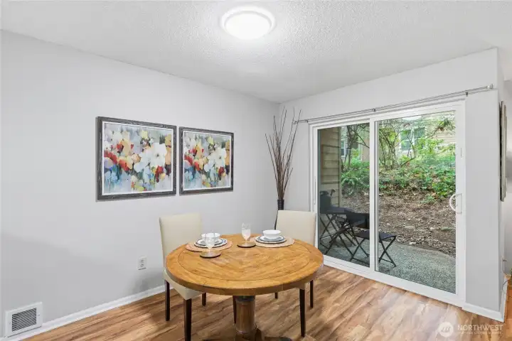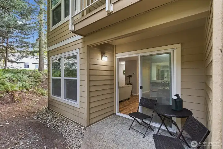 Modern Convenience Meets Serene Living. Nestled in the heart of Bellevue’s Bridle Trails neighborhood, this spacious 2-bedroom, 2-bathroom ground-floor end unit offers the perfect blend of privacy and accessibility. Just blocks from the Microsoft campus and minutes from SR-520, your commute has never been easier. Enjoy an open-concept living area anchored by a cozy wood-burning fireplace, leading out to a charming private patio—ideal for morning coffee. With a little imagination, the oversized utility room provides rare extra space for an office nook, home gym or hobby room - what ever extra space it is you need. Take advantage of community amenities including a pool and clubhouse, all while being situated in the top-rated Bellevue School District. Welcome home to Forest Glade!