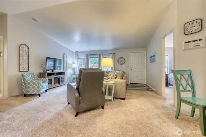 Beautifully maintained home in Peninsula Woods Mobile Home Park! Ideally situated on a spacious corner lot with a private large yard including fencing and a storage shed. This home is a 3 bedroom 2 bath 1323 sq/ft and has been thoughtfully updated with a newer roof, well maintained flooring/paint offering true move-in-ready convenience. Inside, you'll find vaulted ceilings and abundant natural light that create an open, airy feel throughout. The spacious kitchen features stainless steel appliances, ample cabinet storage, a cozy breakfast nook, and an additional dining area--perfect for both everyday living and entertaining. The generously sized primary suite offers a relaxing retreat, complete with a five-piece bath. Conveniently located just minutes from shopping, dining and all the amenities of Downtown Gig Harbor. Space Rent is $977/month and includes water and septic.