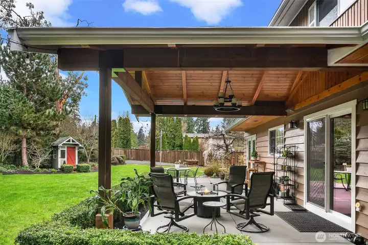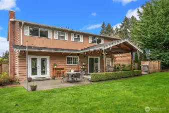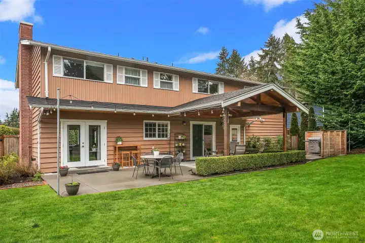Nestled on a quiet cul-de-sac in desirable Edmonds, this charming Colonial-style 4-bed + bonus & den home sits on an expansive 12,600+ sq ft lot. Double doors open to inviting formal living with gas fireplace. Seamless flow into dining area with French doors, framed by built-ins, lead to patio. Beautiful millwork & hardwood throughout elevates each space. Kitchen thoughtfully designed with maple shaker-style cabinetry & pull-outs, beveled glass subway tile, stainless steel Kitchen Aid appliances, & slab granite countertops. Ample built-ins for great storage. Sliding door extends entertaining outdoors to a PNW-style covered patio, ideal for year-round enjoyment. Den on main with built-in maple desk & cabinetry. Upstairs the huge rec-room provides flexible space for entertainment, hobbies, or guests. Additional highlights include a long driveway with plenty of guest parking, 2-car garage, & gravel parking pad with direct gated access to the street. Fully fenced yard offers room to roam, complete with thoughtful gardener’s touches, storage sheds, & sprinkler system for easy maintenance.