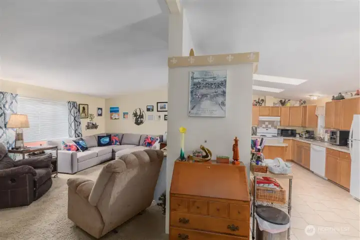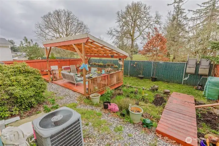 Spacious 1627 square foot, 3 bed, 2 bath home in an all-ages park. Home features tile flooring in kitchen, dining room, and primary bath. Heat pump for efficient and comfort all year long. 5-piece primary bath. Fully fenced yard with perennial landscaping, and a covered gazabo. 2 car detached carport with a storage shed to the side. 10% down lending options available.