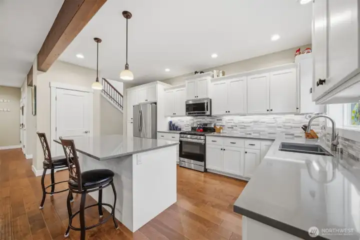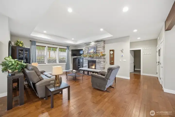 Tucked into a peaceful corner of East Lynden, this beautifully crafted home offers a calm, elevated living experience with a modern palette and an effortless sense of flow. Soft natural light moves through the open main level, where a refined kitchen with quartz surfaces and clean lines opens to warm gathering spaces anchored by a stone-framed fireplace. The main-floor suite feels like a private retreat, while the upper level provides generous additional living space and well-appointed bedrooms that offer both comfort and separation. Outside, the fully fenced yard and patio extend the home's relaxed, welcoming feel - an easy place to unwind or gather. Thoughtfully designed and exceptionally well built, the home blends contemporary finishes with a quiet sophistication that stands out in this sought-after neighborhood. A place that feels settled, soothing, and ready for its next chapter.