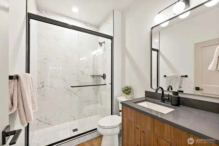 Newly completed, this exceptional Northwest Contemporary is a rare offering—set on a private .35-acre homesite along The Loop Walking Trail with sweeping views of territory, valley, and Mount Rainier, and of course the world famous Puyallup Fair. This 3,037 sq ft home features 4 bedrooms (potentially 5), 2.75 baths, and thoughtfully curated designer finishes throughout. The open-concept main level is anchored by a stunning chef’s kitchen with premium appliances, expansive prep space, and an oversized walk-in pantry, flowing seamlessly into light-filled living and dining areas designed for both everyday living and entertaining.Upstairs, retreat to a luxurious primary suite with vaulted ceilings, spa-inspired bath, and a generous walk-in closet. Additional bedrooms and a versatile bonus space provide flexibility for work, play, or guests. Outdoor living shines with a fully fenced yard, deck, and patio—perfect for relaxing or hosting while enjoying the peaceful setting.Set down a long private drive and backing to open space, this property offers a sense of seclusion rarely found in new construction, all just minutes from downtown Puyallup, the Washington State Fair, and convenient access to Hwy 512, 167, and I-5. A unique opportunity to own a nearly new home on a large, private lot in an established and highly desirable location.