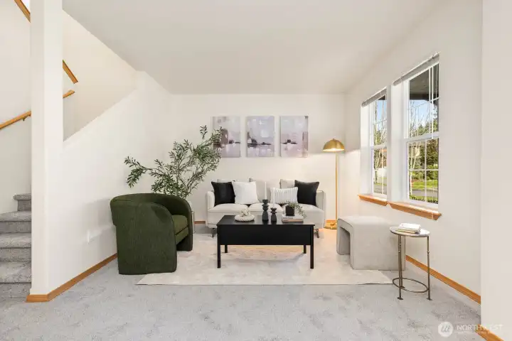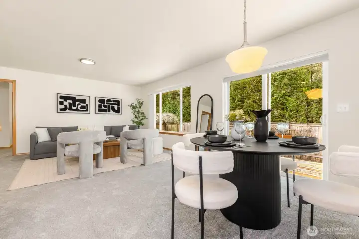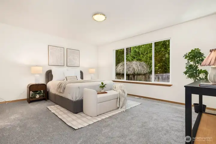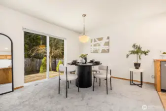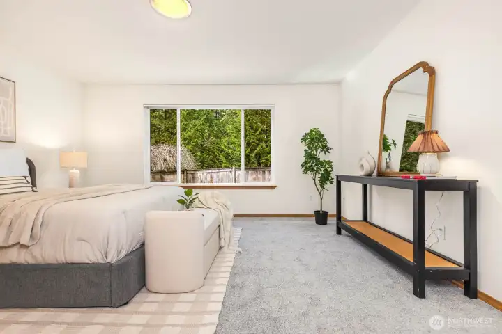 Set at the end of a peaceful cul-de-sac in a close-knit Olympia neighborhood, this inviting 4-bedroom, 2.5-bath home blends the comfort of main-level living with space to grow. The main-floor primary suite offers a generous walk-in closet and a private ensuite with a soaking tub—perfect for unwinding at day’s end. Thoughtfully refreshed with fresh interior paint, brand-new carpet, and updated lighting, the home feels bright, clean, and truly move-in ready. Natural light fills the two living spaces, adding warmth and comfort throughout. This is more than just a home—it’s a community. Set on a street with no through traffic, neighbors here have built lasting connections, gathering for annual potlucks and yard sales that make this neighborhood feel truly special. Directly across from Grass Lake Nature Park, you’ll enjoy easy access to scenic trails, biking, and peaceful outdoor escapes. With Capital High School within walking distance and close proximity to The Evergreen State College, Capital Medical Center, shopping, dining, and more, this home offers the perfect balance of tranquility and convenience.