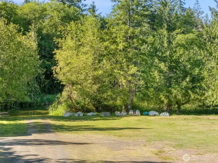 Perfect weekend get-a-way, with room for your RV on this recreational Fawn Lake lot. Covered outdoor kitchen & picnic area. Bridge allows access to the other side of this property. Enjoy relaxing on your lot or all that the community has to offer. Fawn Lake has parks, cabana, horseshoe pits, swimming, fishing, tennis and basketball courts. Short distance to a park with access to the lake and a place for your Canoe or row boat. Call your Broker for a showing to access inside the gate. Owner owns both lots on either side. The encroaching yard with rock wall will be removed and the property line enhanced.