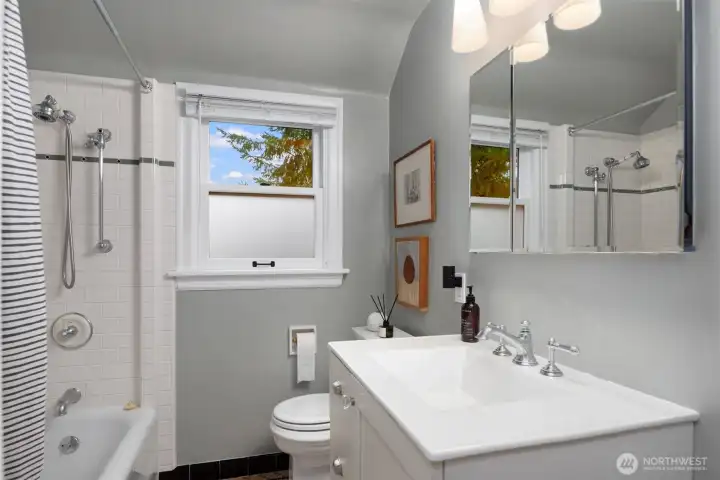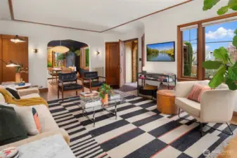 Vintage details, beautiful spaces, an abundance of natural light, and a grand facade make this Belvidere Tudor a neighborhood standout. As you enter through the front door, you will immediately notice how the home is flooded with natural light. Relax in the gracious living room and imagine cuddling by the fire on a chilly winter night. The spacious dining room is perfect for hosting fabulous dinner parties or Sunday brunches. And there is even a cute eating nook beyond the kitchen for enjoying your morning coffee or more intimate dinners with your honey. For less formal fun time, head downstairs. This cool rec room is just right for game nights, movie time, or just binge-watching Traitors. As the days get longer and the weather gets warmer, you can move your entertaining to the large private backyard. So much space here for gardening, lawn games, or playing with the pooches. Light up the grill and dine al fresco on the sweet backyard patio. Then afterward, grab a cozy Pendleton blanket and gather around the firepit with your friends to relax for the evening. The best part is when you are not in the mood to entertain in your gorgeous home, you are living in one of West Seattle's most desirable and convenient neighborhoods. Here you are just blocks to great restaurants like Circa, Mission Cantina, and Mioposto. Bike to Alki for beach time or to Alaska Junction for one of the best farmer's markets in the city. And Metropolitan Market is also just minutes away!
