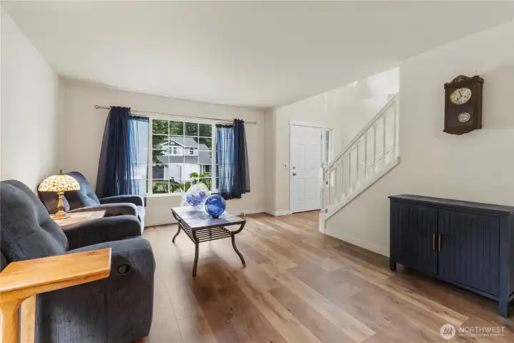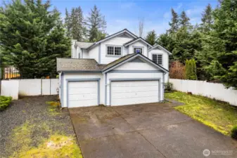 Large 17,193 sq ft lot • 2024 interior remodel • Covered deck • 3 bedrooms + bonus room! Two-story home on a over a third acre lot in Graham with 3 upstairs bedrooms plus a large bonus room and 2,146 sq ft of interior living space. Main level includes a living room, dining and family room with gas fireplace plus an eat-in kitchen. Entire home interior was remodeled in 2024 with new kitchen and bathroom cabinets, all new appliances and with laminate flooring throughout main living spaces, new vinyl flooring in bathrooms and laundry room, and wall-to-wall carpet in all upstairs living areas. Kitchen and living areas connect to a large covered deck overlooking the fully fenced backyard, providing outdoor space and room for yard use. Attached three-car garage with driveway parking and wired for a generator. Located on a quiet, dead end street with convenient access to Meridian Ave E retail and services.